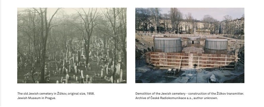 The TV tower was built in the 1980s on the site of what had been one of Prague’s largest Jewish cemeteries.